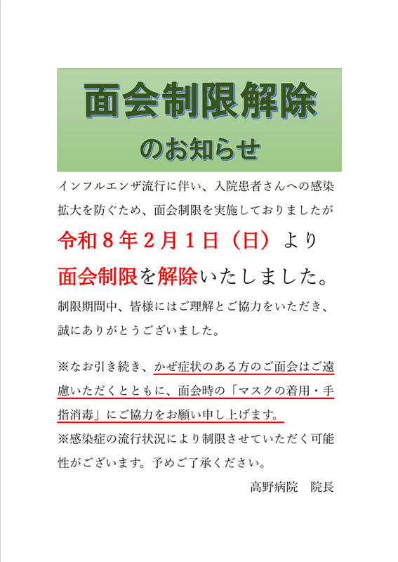 病棟面会についてのお知らせ