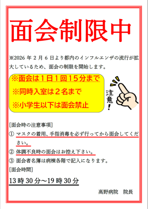 病棟面会についてのお知らせ